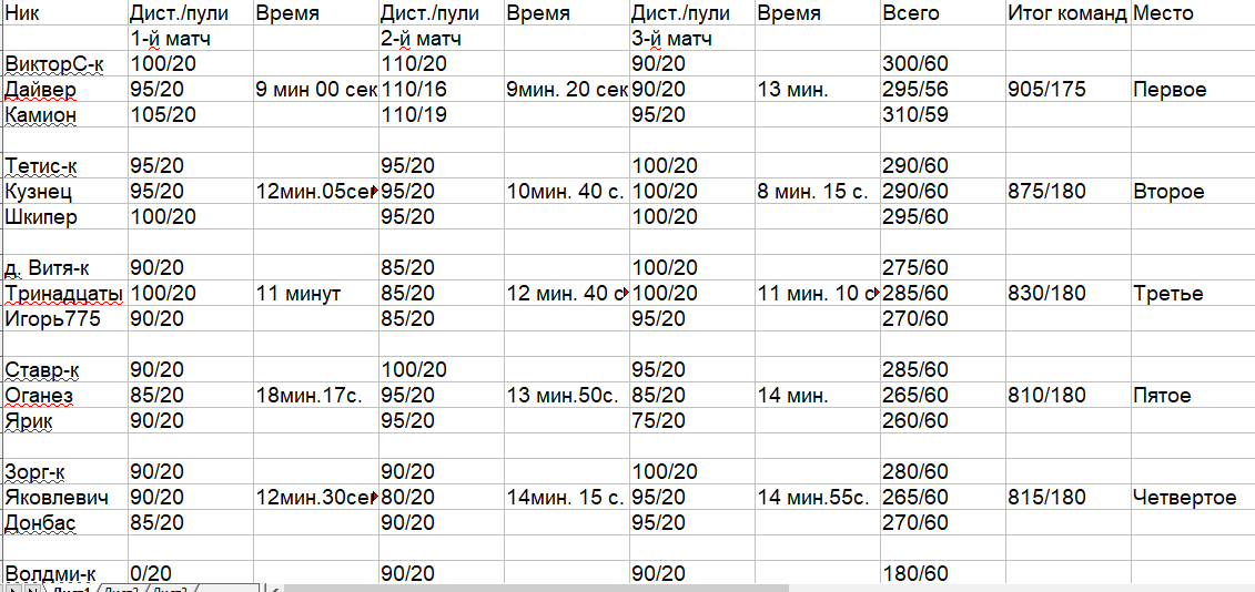 - HellRiser г.Севастополь ИТОГО по ТРЁМ матчам - 635 баллов