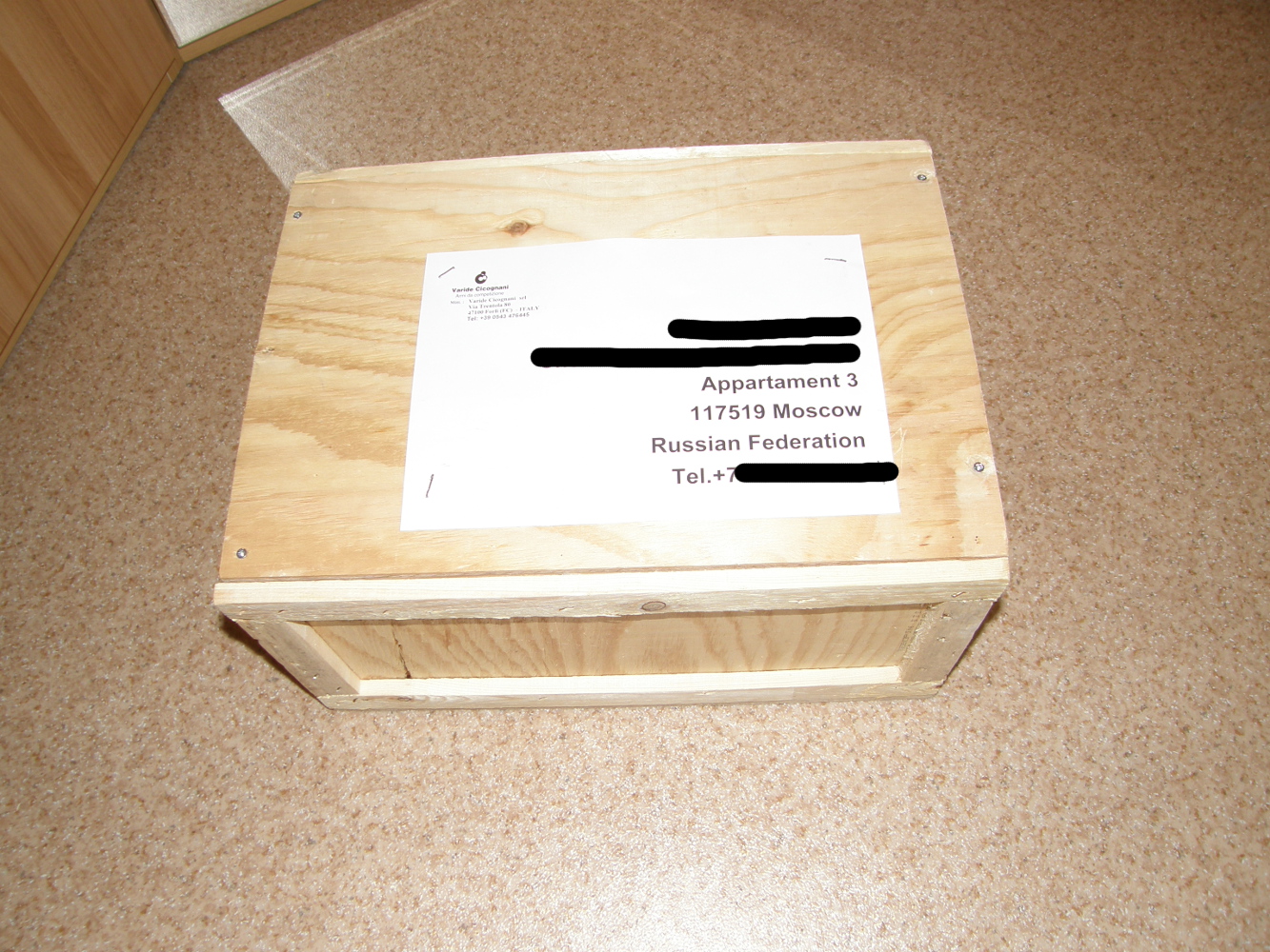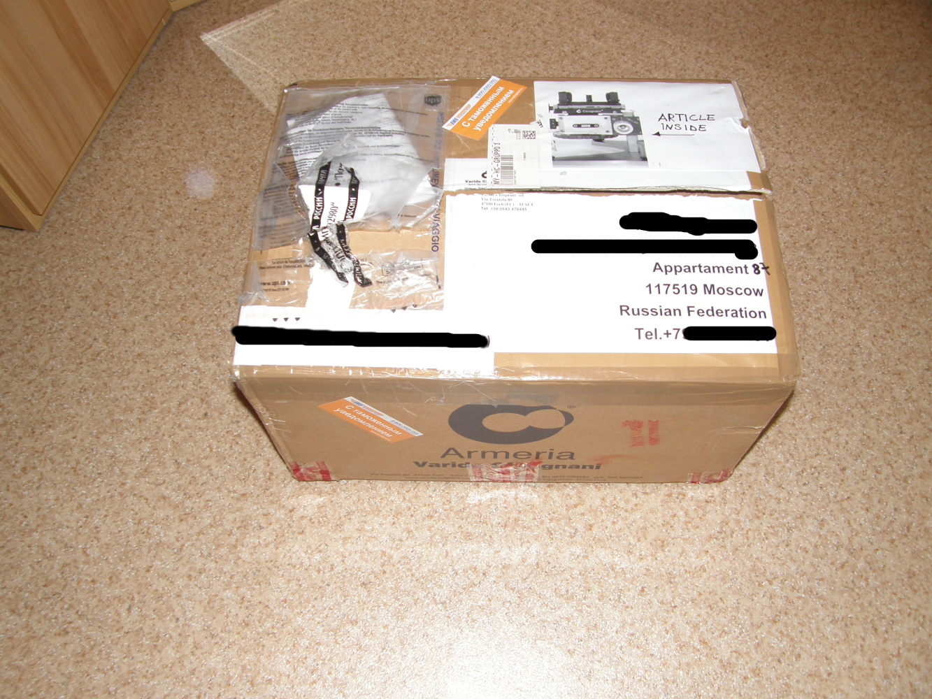 Счет я оплатил в течении недели. Итальянцы сказали что через неделю отправят посылку. Но по факту прошло примерно 3 недели. Сначала они сказали что не успели, потом хеллоуин, потом что одного подшипника нет, ждут когда привезут. Высылали фото полу-готового упора. И вот наконец фото запечатанной коробки.