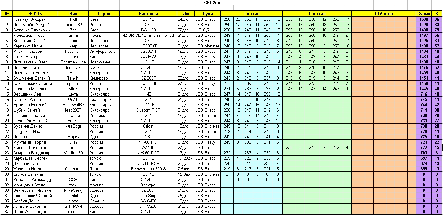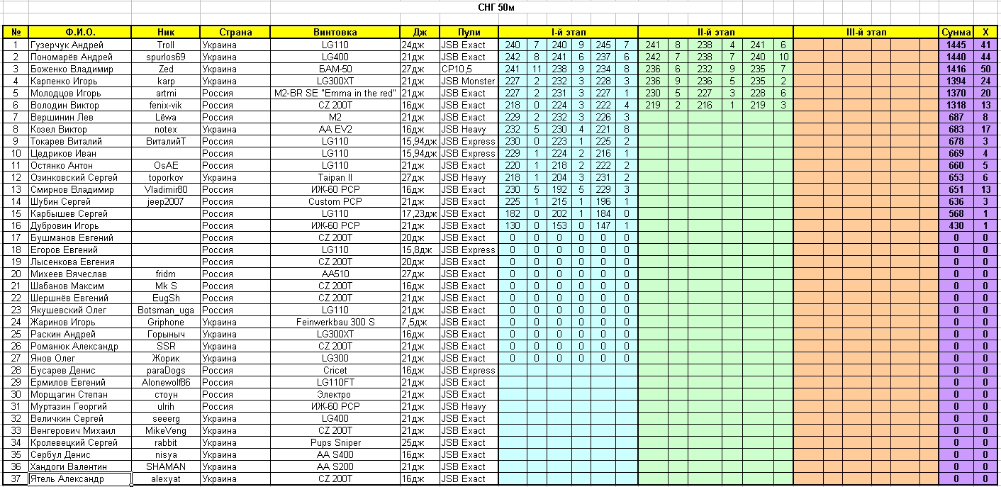 К сожалению, в Томске не удалось провести второй этап. Один стрелок уехал на вахту с февраля по май, а два других остались без винтовки, так как она продана полмесяца назад, а новая, по сути, ещё в процессе отладки. Теоретически есть возможность отстрелять с другой винтовки в следующие выходные участникам: ВиталийТ и IoGun. И то не факт. Возможно будет отстреляв в следующую субботу попасть в зачёт второго этапа? Если нет, то и напрягаться не станем, да и обид не будет- правила, есть правила, понимаем, ценим!