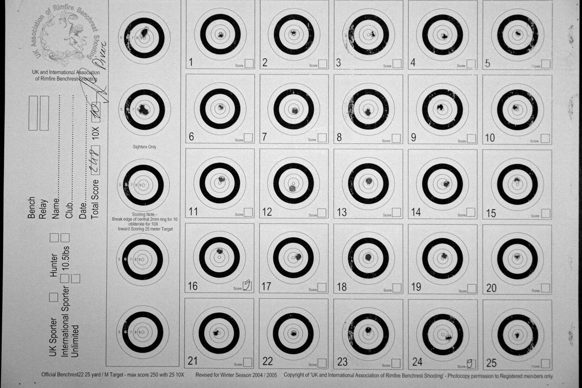 Здесь мишени с контрольного отстрела, произведенного совместно с тов. Дайвером, после которого я отказался от мысли продавать винтовку три года назад... Подробности здесь: