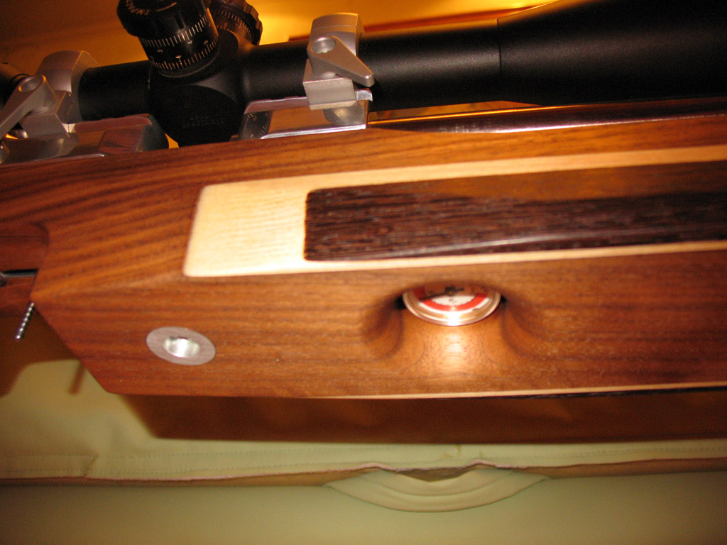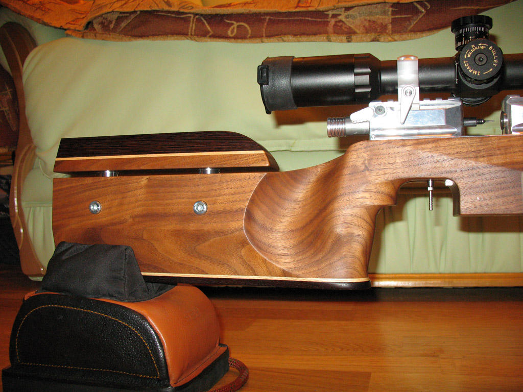 Ну и фоты самой винтовки. Она пока не до конца закончена - нет затыльника (на изготовлении), нет скобы спускового крючка, нет подушечки на спусковой крючок, ложа покрыта первой пропиткой и еще не высохла. Хочется 23-го участововать с ней в соревнованиях, отсюда и спешка. Но тем не менее...