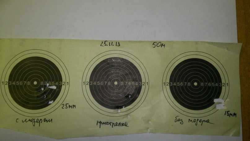 Попросил мастера спорта пострелять(местный тренер) у него тоже 3 пули в группу в 10мм уложились и 2 рядом общий диаметр по краям 20мм вышел по его мнению винтовка отличная и бьет кучно -но я то знаю ,что это не ее уровень ! У меня крюгерка на этой дистанции 8-10мм собирала .