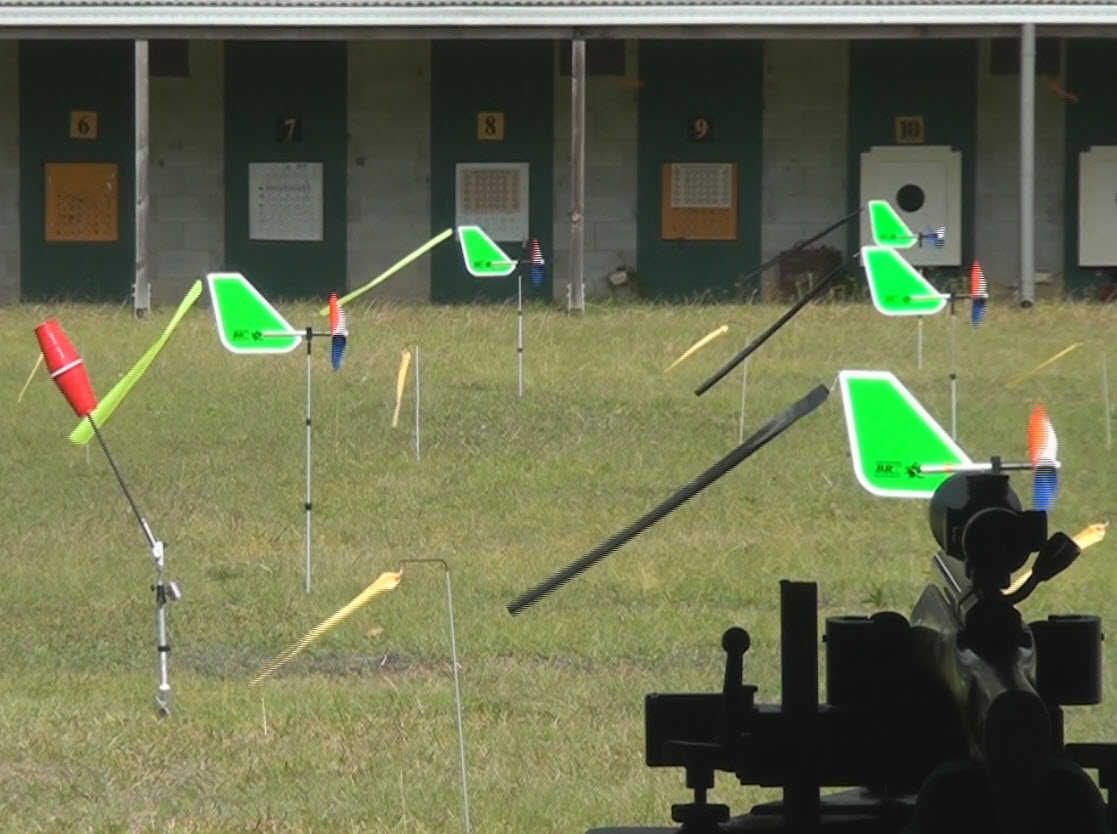 На фото видно, что на поле не только флаги, но и на стойках пониже привязаны просто ленточки. Это меня навело на некоторую мысль. Бывают ситуации, когда флаги не реагируют, но пуля отклоняется, а в прицел видны термики. Может для таких слабых потоков использовать кусок проволоки с магнитофонной лентой. Кто помнит, раньше аудио касеты были такие...