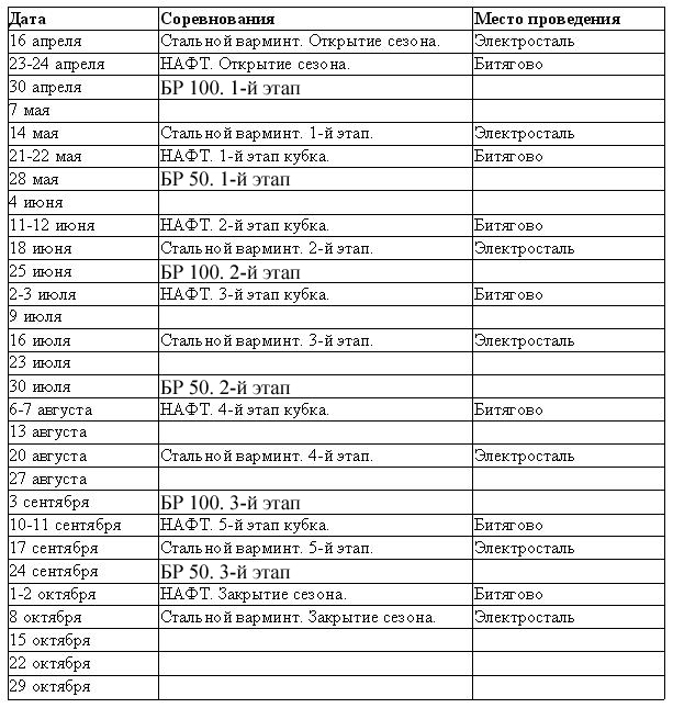 Только есть небольшая накладка : две даты (28 .05 и 24.09) . Стрельбище одно и Андрей (AGM) предложил свой план по БР на сезон . По этим датам пересечение . 100м и 25м одновременно - напряг :lol: в проведении .