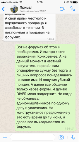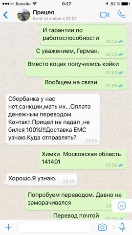Но при переписке в Вацапе было озвучено мной что прицел только в пятницу поедет на стрельбище. Косяк вылез в ночь с четверга на пятницу при подготовке к поездке.