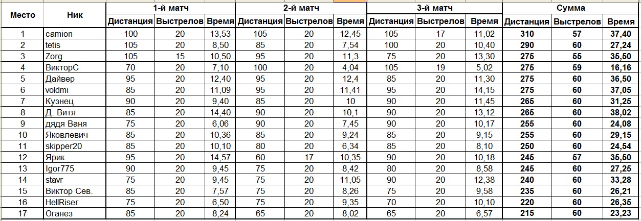 В итоговой табл. по Легкому Варминту у Хелрайсера нужно поменять местами красный цвет 4-го и 5-го этапов